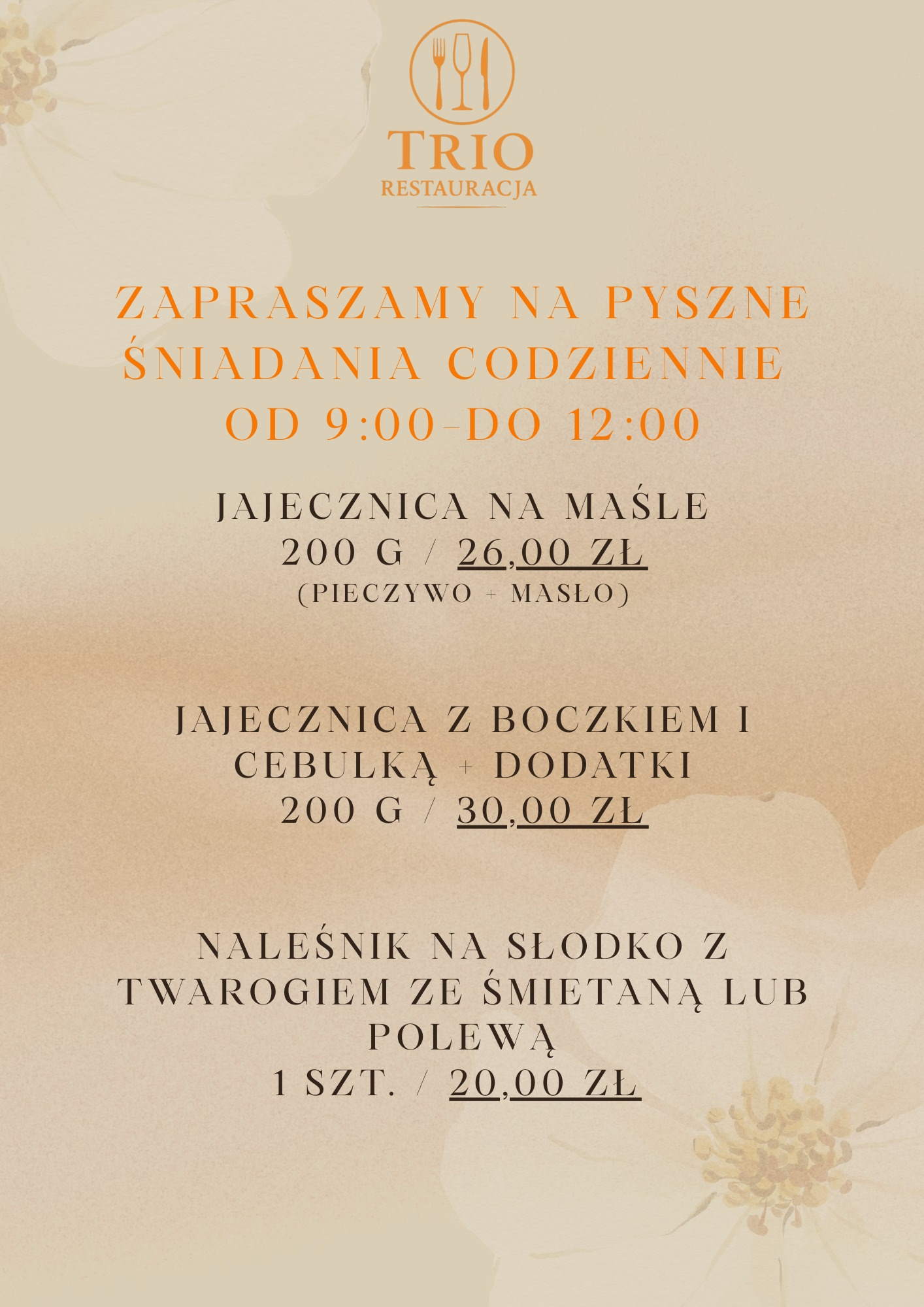 Śniadania Opole - jajecznica, naleśniki i kawa od 20 zł. Codziennie 9:00 - 12:00